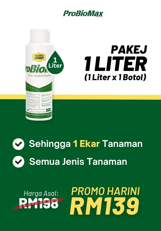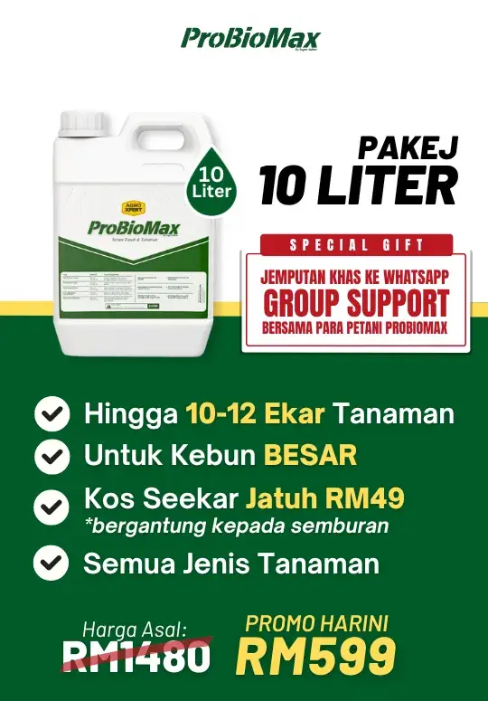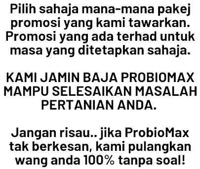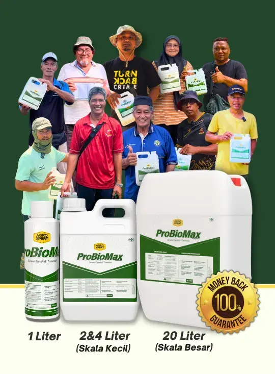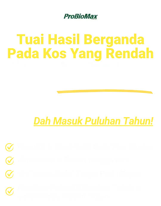 ProBioMax: Kesan stabil 1 musim ke atas (jika tanah konsisten dirawat).