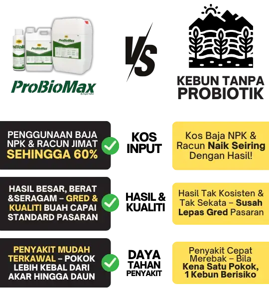 ProBioMax bukan pengganti NPK. Ia adalah “penambah kecekapan”.