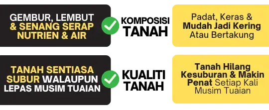 Apabila Tanah Kembali Aktif, Akar Jadi Lebih Kuat, Nutrien Terikat Dibuka Semula, Dan Baja NPK Yang Tuan Guna Diserap Dengan Lebih Cekap.