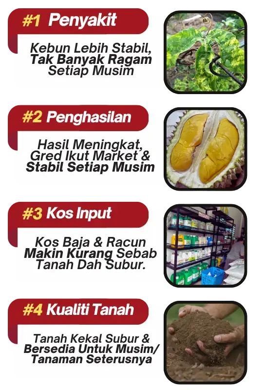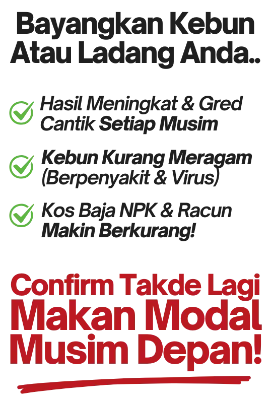 Sebab itu banyak kebun sawit, padi, durian dan sayuran melaporkan kurang masalah akar, batang & daun selepas beberapa minggu penggunaan.